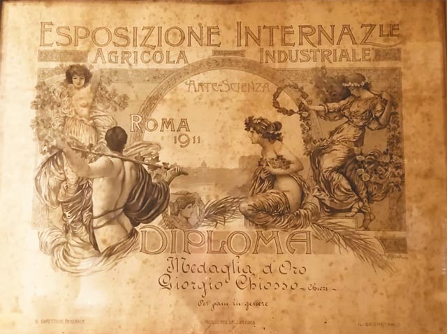 La qualità della produzione della Panetteria Chiosso era di elevata qualità, al punto che la famiglia ricevette la medaglia d’oro nell’Esposizione Agricola e Industriale tenutasi a Roma nel 1911, un ambìto premio che attestava l’eccellenza nella produzione dei loro prodotti.